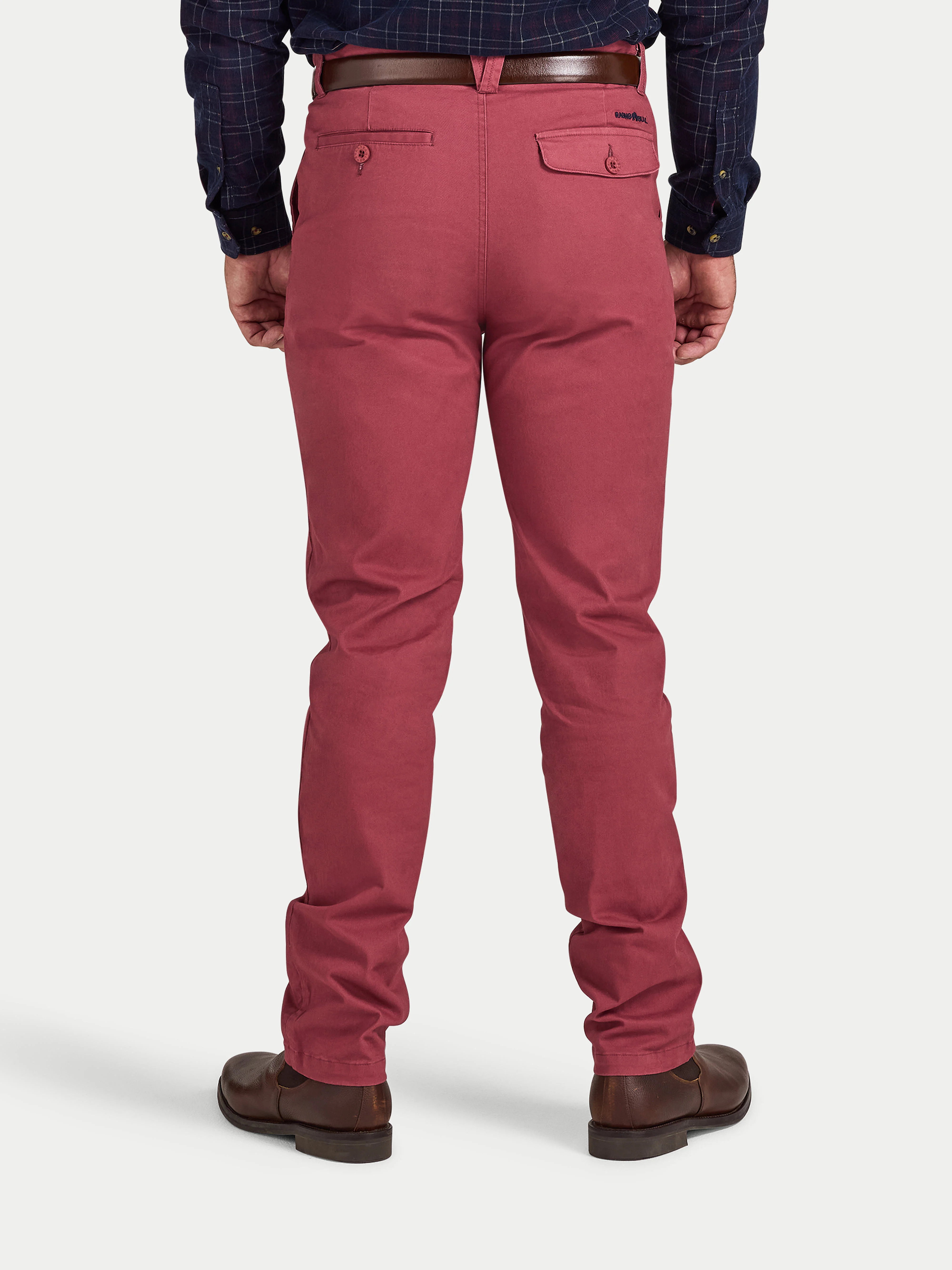 Expertly crafted from a high-quality cotton elastane blend with just the right amount of stretch, our Classic Chino Trousers in berry red offer both comfort and durability. Perfect for any occasion, these smart trousers effortlessly combine a classic style with a casual feel.