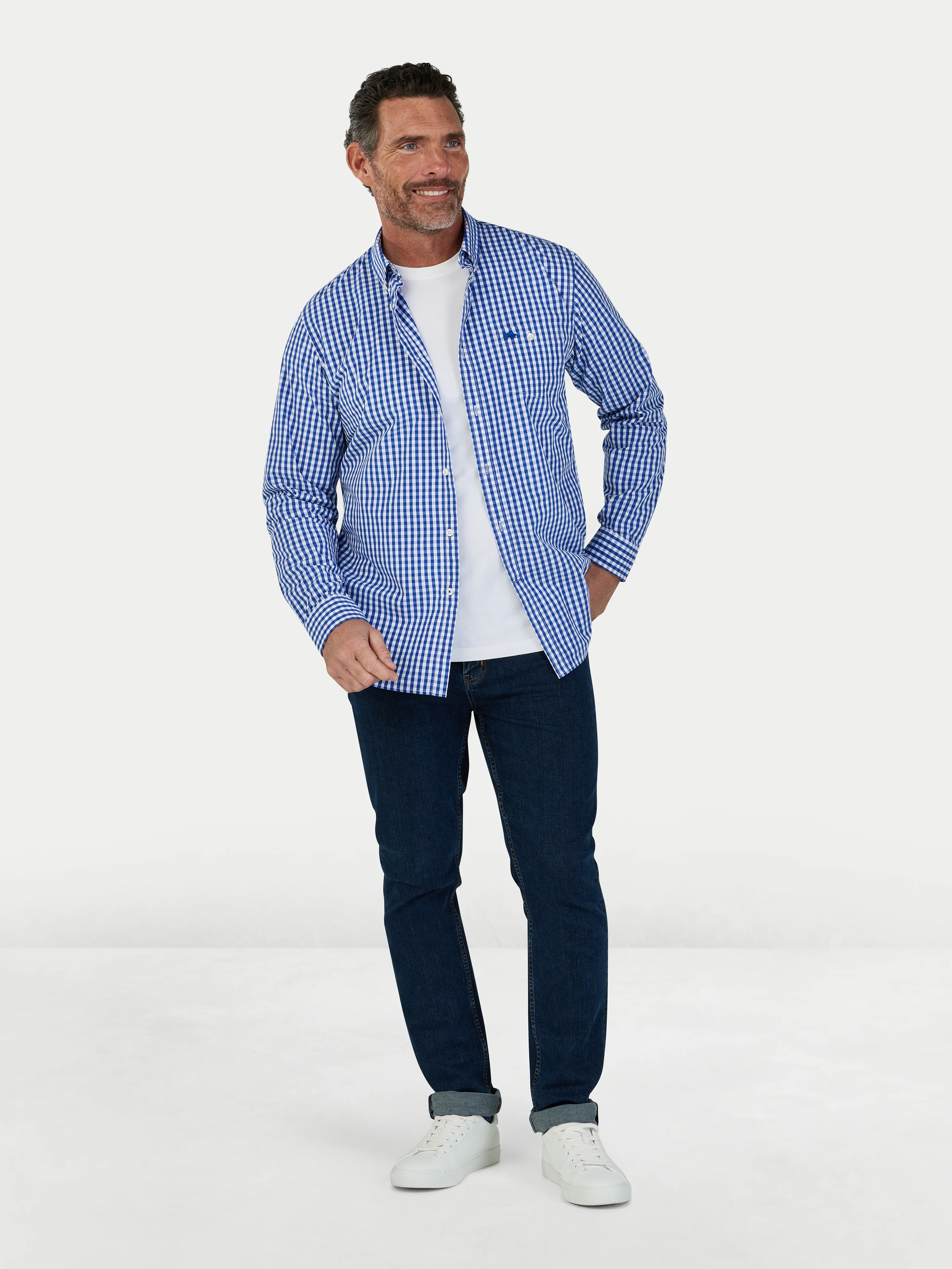 Classic Long Sleeve Gingham Shirt - Navy